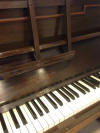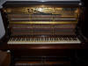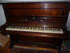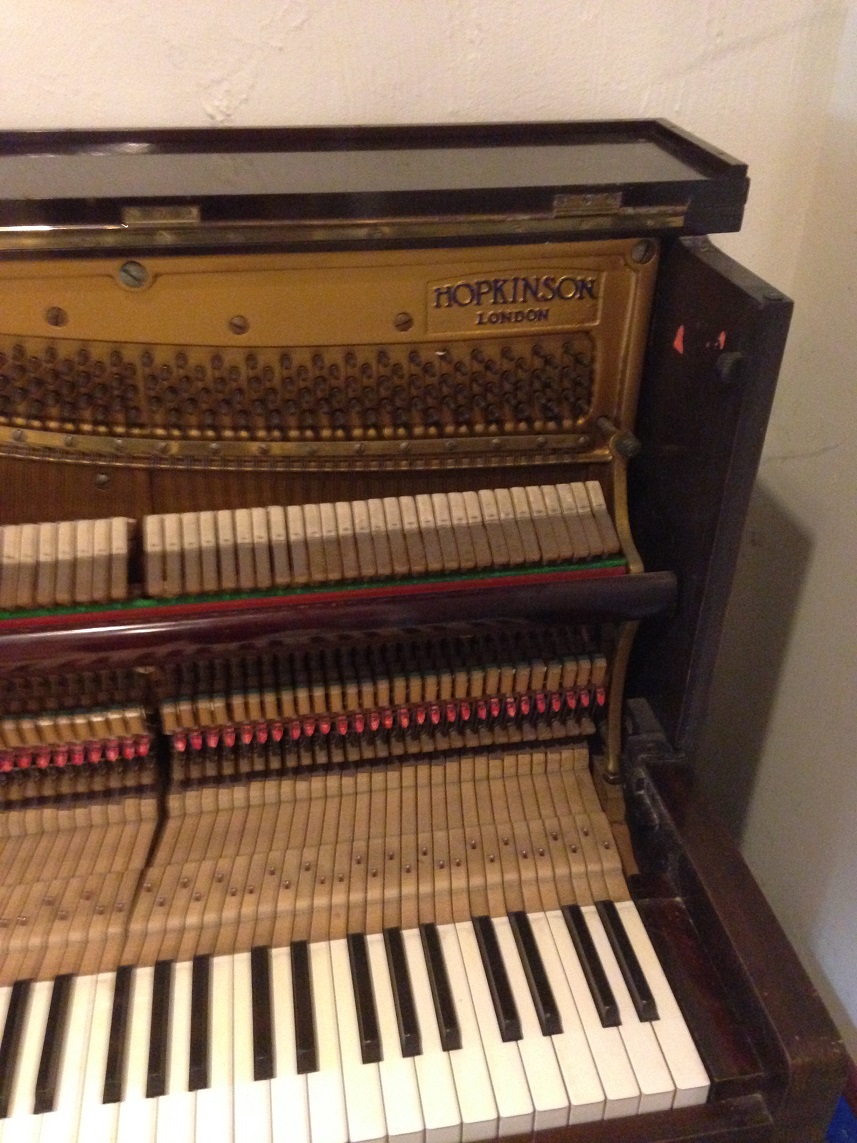 HOPKINSON Upright. A compact 85 note model manufactured in the late 30's by this under-rated British maker and extensively re-felted and overhauled (by myself) over 20 years ago. It is therefore in excellent mechanical condition (having been little played since). Structurally all is good and as it should be - the consistently light touch producing a surprisingly "big" sound. The case-work however is beginning to show its age but is still largely quite presentable and measures; H: 118cms W: 148cms D: 60cms. Tuned very recently a 1/2tone below Concert ( so a double tuning will be needed if A.440 is required)